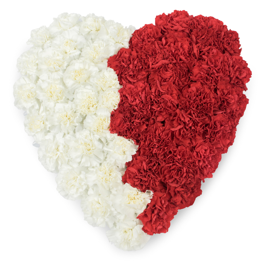 Experience the beauty and uniqueness of our specially designed mixed carnations heart arrangement by Handy Flowers. This bouquet harmoniously blends white and red carnations to create a stunning floral symphony that conveys deep emotion and elegance. Each flower is carefully hand-selected to ensure unparalleled freshness and quality, making this arrangement a perfect gesture for any special occasion.